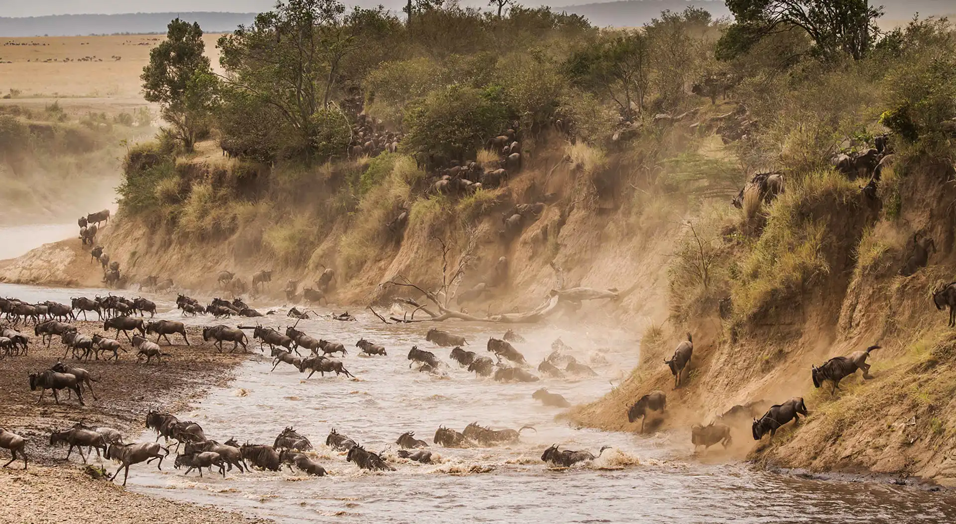 Best time to see the Great Wildebeest Migration in the Serengeti river crossing & calving season